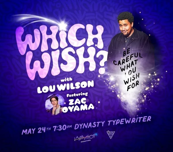 May 24: Lou Wilson is here to make your dreams come true. And also, Zac Oyama's dreams come true. Come see “Which Wish" on 5/24, 7:30pm @ Dynasty Typewriter.
